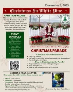 - 4 PM – 5 PM: White Pine Christmas Parade on Main Street