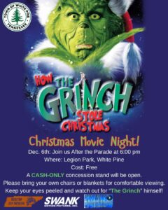 - 6 PM – 8 PM: Community Christmas movie at Legion’s Park featuring the live action How The Grinch Stole Christmas
